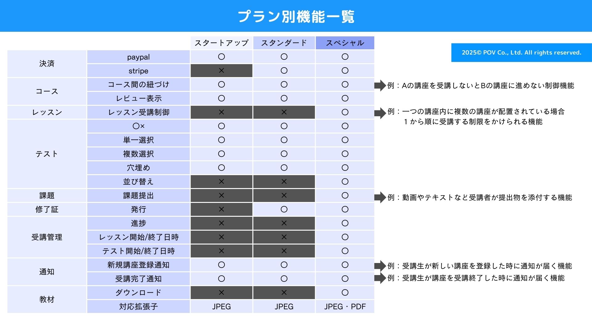 株式会社POV オンライン学習システム 初期導入費用0円~! あなたのお悩み… オンライン学習システム(LMS)で 解決しませんか? 日々の業務に追われて自分の時間が作れない… 稼働していないと収入が減ってしまう… 人を育てたいけど、時間がない… MERIT LMSのメリット メリット1:24時間あなたの代わりに働き続けてくれる LMSは、あなたが稼働していない時間でも常に必要とする人に情報を届けてくれます。 リアルの研修に付加価値をつけたり、販売をすることで収益をアップする事も可能になります! メリット2:世界中どこでも学びを届けられる LMSは、地理や時間の壁を超え、世界中に学びを届けられます。あなたの知識や経験が、地球のどこかで誰かの成長に繋がります。 だからといって… LMSを導入するには 想像以上にコストがかかるし… 自分で制作するのは時間もかかるし難しそう… それ、ULearningがお役に立てます。 About ULearningとは? ”圧倒的低価格”をコンセプトに作られたオンライン学習システム 「LMSを導入したいけど、高すぎて…」「こんなにたくさん機能なくていいのに…」そんなお声から生まれたUlearning。 余分な機能を省いて、ユーザーにあわせたカスタマイズが可能です。 プランは全3種類。ご希望にあわせたプランをお選びください。 お問い合わせはこちらから PLAN ULearningプラン #01 スタートアッププラン 動画マニュアルを見ながらご自身で構築を行っていただくプラン。 余分な機能を省き、基本機能のみを搭載しています。Paypal決済による講座販売にも対応しているので、低コストでeラーニング販売を始めたい方に最適です。 初期導入費用:0円 月額利用料:5,400円(税抜) #02 スタンダードプラン トップページ及び初回100コンテンツまでの設置代行付プラン。スタートアッププランの機能に加え、stripe決済・修了証発行に対応。 初期導入費用:300,000円(税抜) 月額利用料:5,400円(税抜) #03 スペシャルプラン トップページ及び初回300コンテンツまでの設置代行付プラン。スタンダードプランの機能に加え、eラーニングに必要な様々な機能が備わっています。 初期導入費用:700,000円(税抜) 月額利用料:5,400円(税抜) 公式LINEご登録特典 LINE公式お友達限定のクーポンをゲットしよう! 公式LINEでは、eラーニングに関する様々な情報を配信しています。 公式LINEお友達限定のお得なクーポンも配布しています。 是非、ご登録ください! お問い合わせ このフォームに入力するには、ブラウザーで JavaScript を有効にしてください。お名前 *会社名:屋号メールアドレス *お問い合わせ内容 *この内容で送信する 会社情報 住所 神奈川県横浜市保土ヶ谷区岩井町11-909 電話番号 045-459-9081 営業時間 10:00-18:00 土日祝日定休 各事業web eラーニング動画制作・導入サポート